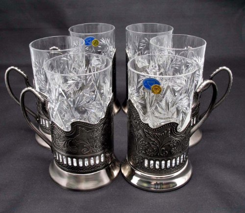 -. Brand : Belarus -. Color : clear stainless -. EAN : 0185868000987 -. Feature : WHEN PURCHASED FROM SELLER "WORLD GIFTS" ITEM IS PROFESSIONALLY PACKAGED FOR DAMAGE-FREE SHIPPING / Set of 6 Russian cut crystal glasses w/metal holders / crystal glasses are suitable for hot or cold liquids / 250 ml glass is slightly tapered from top to bottom measuring 2 3/4" top diam. x 2.5" bottom diam. x 4 1/4" high -. Label : BELARUS -. Manufacturer : BELARUS -. ProductGroup : Kitchen -. ProductTypeName : KITCHEN -. Publisher : BELARUS -. Studio : BELARUS -. Title : Combination 6 Russian CUT Crystal Drinking Tea Glasses W/metal Glass Holders "Podstakannik" for Hot or Cold Liquids -. UPC : 185868000987