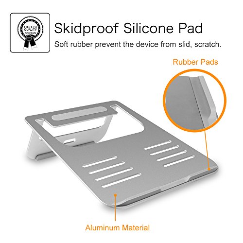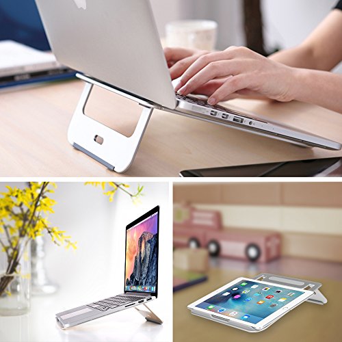 -. Title : Aluminum Foldable Laptop Stand - Fintie Portable Desktop Cooling Mount Holder for iPad Pro, Macbook Pro, Macbook Air and 11-15" Notebook Chromebook Surface Laptop, Silver