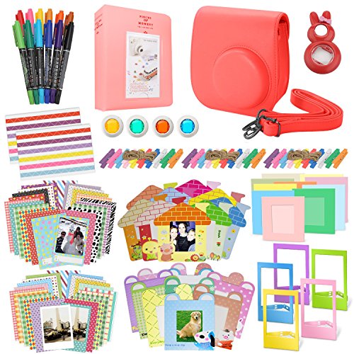 95 PIECE ACCESSORY KIT CONTAINS: 1 Case, 1 Album, 4 Close up filters, 12 Marker pens, 10 Paper frames, 10 Bunny paper frames, 9 House Frames, 5 color plastic frames, 1 Selfie mirror lens, 2 sheets of corner stickers, & 40 piece film stickers