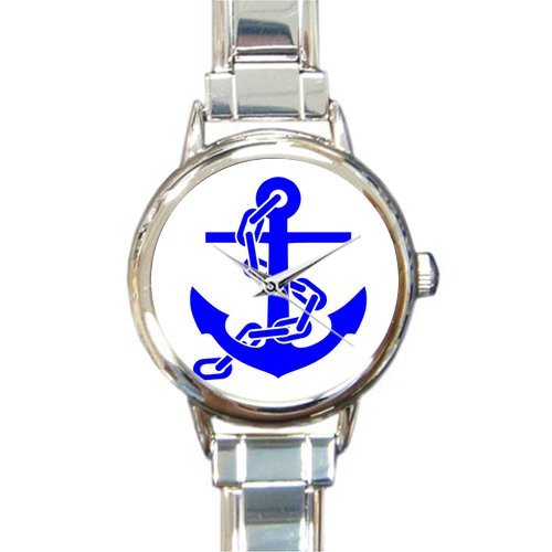 -. Title : Christmas Day Gift Cool Nautical Anchor Pattern Round Italian Charm stainless steel Watch