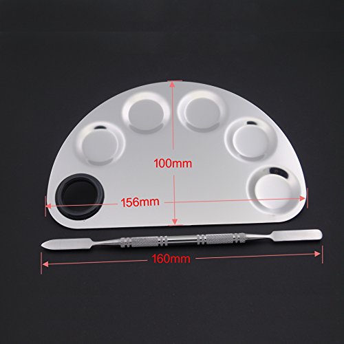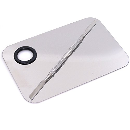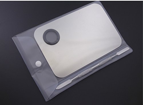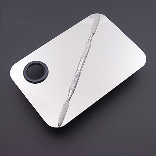 -. Feature : Palette and spatula tool dimension: makeup palette size is 14.8 x 10 cm/ 5.8 x 4 inches, spatula tool is 15 x 0.6 cm/ 5.9 x 0.24 inches with dual-ended for different needs / Palette with rubber-coated thumb hole is very convenient for you to hold. Proper size to to fit your makeup bag or hand bag, carry with you makeup kit for outside use, party, night club, etc. / Durable material: made of stainless steel with smooth texture, easy to clean, suitable for a variety of color cosmetics use, good tool to create your own beauty and fashion / Wide applications: palette is suitable for mixing foundation, blending lip colors or eye shadow, also can use with nail art paint, gels, nail polishes, pigments, lash adhesive, etc. / Quantity: 1 piece of makeup palette and 1 piece of dual-ended spatula tool, palette with rubber-coated thumb hole is very convenient for you to hold