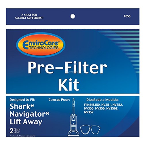 -. Feature : Washable Foam and Felt Pre-Filter Replacement Kits / Fits the following Shark Navigator Lift-Away Models: NV350, NV351, NV352, NV355, NV356, NV356E, NV357 / Designed & Engineered By Envirocare Technologies #F650 / Absolutely Essential for Allergy Sufferers! Traps 99.97 of airborne particles / Replaces: Shark Euro-Pro Part Number XFF350