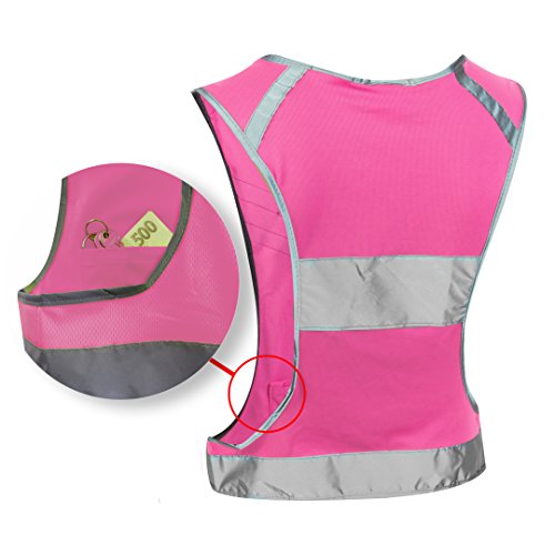 Women Reflective Vest EvoLike of Unique Design for Running Walking Cycling Jogging Motorcycle with Pocket + 4 High Visibility Wristbands + Bag (Fluorescent Pink, Size S/M)