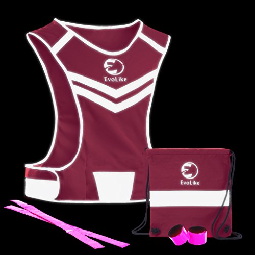 Women Reflective Vest EvoLike of Unique Design for Running Walking Cycling Jogging Motorcycle with Pocket + 4 High Visibility Wristbands + Bag (Fluorescent Pink, Size L/XL)