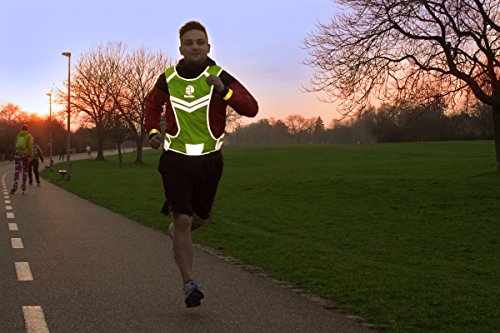 Original Reflective Vest of Unique Design for Running Walking Cycling Jogging Motorcycle + 4 High Visibility Wristbands + Bag (Fluorescent Green, Size L/XL)