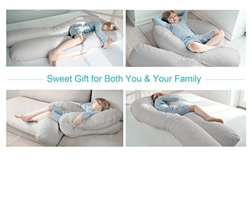 -. Feature : ♥PREMIUM FILLING MATERIAL: High-density and extra soft, this unique Bionic-Polyethylene filling without smelling provides comfort for side sleeping and retains fluffiness for better performance and longer use. / ♥DESIGNED FOR YOU U SHAPE PILLOW: This pregnancy pillow is designed to follow the natural curved shape of your body, no matter how you would like to sleep. Our u-shape body pillow was crafted for pregnant mothers but is comfortable for Everyone! / ♥VERSATILE & MULTI-FUNCTIONAL: This maternity pillow creates a belly support position for sleeping, reading, nursing, watching TV, and breastfeeding. The full-body contour of this pillow provides a painless and sound sleep. Great GIFT for expecting mothers / ♥DEEPLY SLEEP EVERY NIGHT: Ideal for sciatica relieve leg swell and back pain, prevent the oppression of the liver, prevention of hypertension syndrome, eliminate tossing and turning; As well as helps support head, back, belly, sides, knees, hip and feet. / ♥100% SATISFACTION GUARANTEED: Customer satisfaction is our top priority!!! If you are not satisfied with the maternity pillow or any issues, we will refund for you within 30-day.