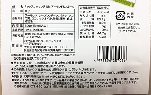 原材料:アーモンド、レーズン、デーツ、バナナ、クコの実、ココナッツオイル、砂糖、米粉、食塩、植物油