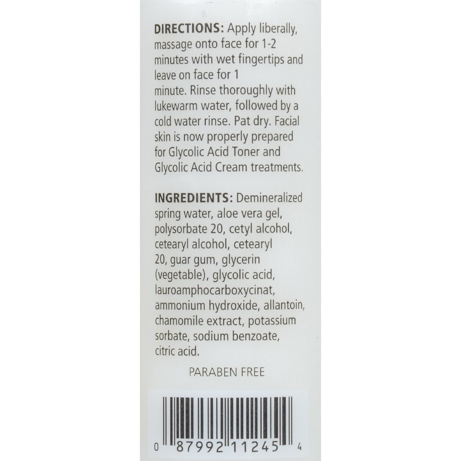 | Reviva Labs Glycolic Acid Facial Cleanser Description: For mature, or sun-damaged skin. Now... we've improved our basic Facial Scrub, formulating a softer scrub - with more honey - so that it can offer deep-pore cleansing for all skin types. Free Of Animal ingredients and animal testing. Disclaimer These statements have not been evaluated by the FDA. These products are not intended to diagnose, treat, cure, or prevent any disease. Ingredients : Demineralized Spring Water, Aloe Vera Gel, Polysorbate 20, Cetyl Alcohol, Cetearyl Alcohol, Cetearyl 20, Guar Gum, Glycerin (vegetable), Glycolic Acid, Lauroamphocarboxycinate, Ammonium hydroxide, Allantoin, Camomile Extract, Methyl and Propyl Paraben, Imidazolidinyl Urea. Size : 4 FZ Pack of : 1 Product Selling Unit : each |