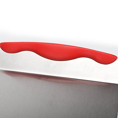 Special features designed, having you in mind: Large - 8" Square surface. Reliable Grip - Wide comfortable handle at the perfect angle. Quality - Stainless Steel rust free. Attractive - Polished SS finish with pink handle.