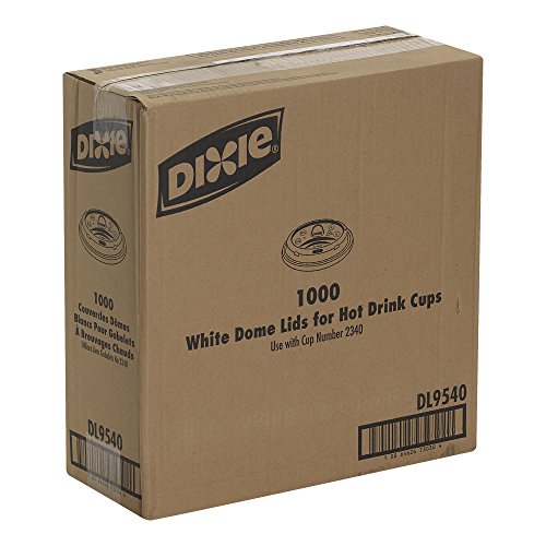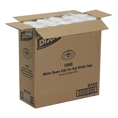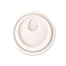 The Dixie DL9540 white plastic drink-through dome lid has four buttons that can be marked to help identify the contents and fits a 10 oz. Dixie paper hot cup. The lid helps seal the hot cup for the prevention of splashing and to slow the loss of heat from the beverage. The dome provides space beneath the lid for beverage foam and toppings. This lid has four buttons to identify the contents as containing "C" (cream), "S" (sugar) "CS" (cream and sugar), and "B/N" (black/nothing). It is stackable for compact storage and comes in 10 sleeves of 100 lids.