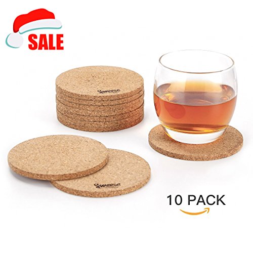 -. Feature : ABSORBENT AND NON-SLIP - Coasters are made of natural cork. They can absorb moisture from cold drinks. Cork coasters don't slide around on the table and won't stick to the bottom of cup. / UNBREAKABLE - These cork coasters are lightweight and unbreakable, can last for a long time, They prevent table surface stains and scratches. / CLASSIC STYLE - The natural color makes these coasters blend well with any occasion, great for drinks at home or in bar, office, restaurant or parties. / GOOD SIZE - Each coaster measures 4 x 4 x 0.19 inches. The coaster is not intended for the microwave or dishwasher. / GIFT PACKAGE - Package includes set of 10 cork coasters. They are well wrapped in a gift box, ideal gift for friends on housewarming, wedding, Christmas or other holidays.