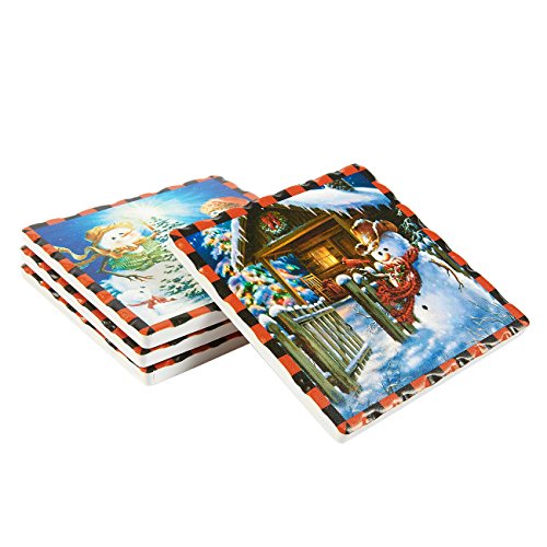 -. Title : 4-Pack Ceramic Coasters - Christmas-Themed Drink Mats with Cork Backing, 4 Assorted Festive Designs