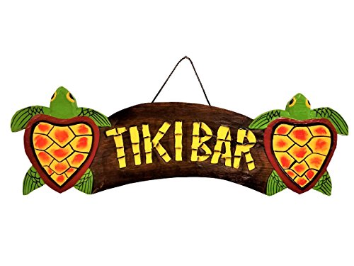 22" x 5" HANDCARVED & PAINTED WOOD "TIKI BAR" WITH TURTLES BEACH DECOR SIGN!