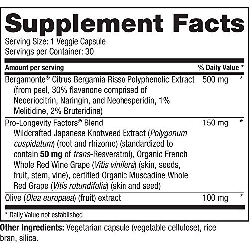 -. Title : Reserveage - Bergamot Cholesterol Support with Resveratrol, a Heart-Healthy Formula, 30 vegetarian capsules