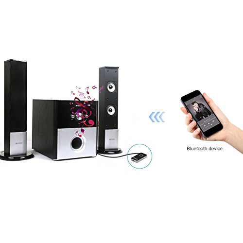 -. Feature : Music or call switching, free and relaxed. Super clear and flow conversation effect. / Simple and Easy Wireless Set-Up, Automatically connect, if you need the cell phone connect the receiver automatically, just turn on the Bluetooth of the cell phone first, and then turn on the Bluetooth receiver. / Simple operation, normal speaker become hands-free Bluetooth speaker magically, portable for vehicle mounted systems. / Two-link: can connect two Bluetooth devices at the same time. Over length receiving distance, can reach up to 30 feet in open space without cables. / Extra-long built-in battery provides up to 10 hours playing time and only need 1.5 hours to charge it fully. NOTE: This is a receiver not a transmitter.