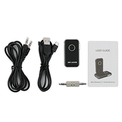 -. Title : Jupi-storm Multipoint Connection 4.1 Bluetooth Audio Music Receiver A2DP Wireless Adapter with 3.5mm AUX Port and Hands Free Calling for iPhone/Android, Headphone, Speakers, Car & Home Stereo etc