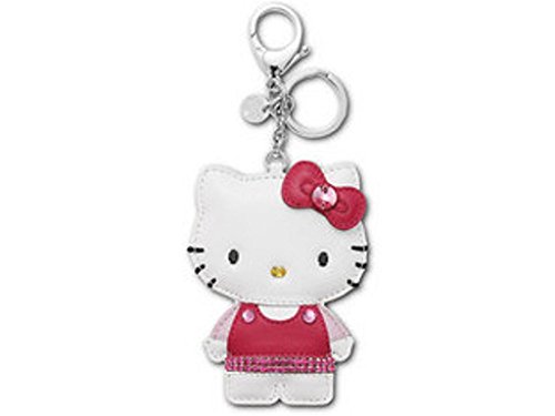 3 3/4"X3 7/8" Elaborately crafted, this unique accessory is created in white calfskin embellished in Fuchsia Crystal Mesh and colored crystal embroidery. Attach Hello Kitty to your handbag so she can accompany you everywhere you go! Size: 6/7.5 x 10 x 1.5 cm