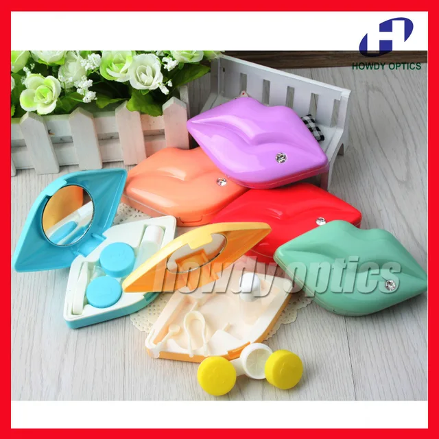 | [해외] 10 개 도매 뜨거운 입술 콘택트 렌즈 케이스 달콤한 색상 무료 배송 |