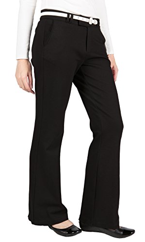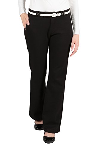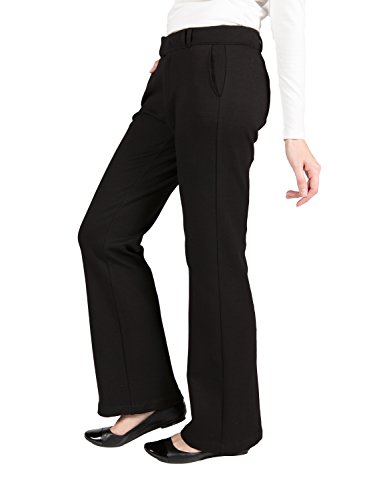 Highly opaque and stretchable double-knit fabric. Contoured fit through waist, hip and thighs, and loose below. Vertical seams along the back of each leg that add a stylish touch.