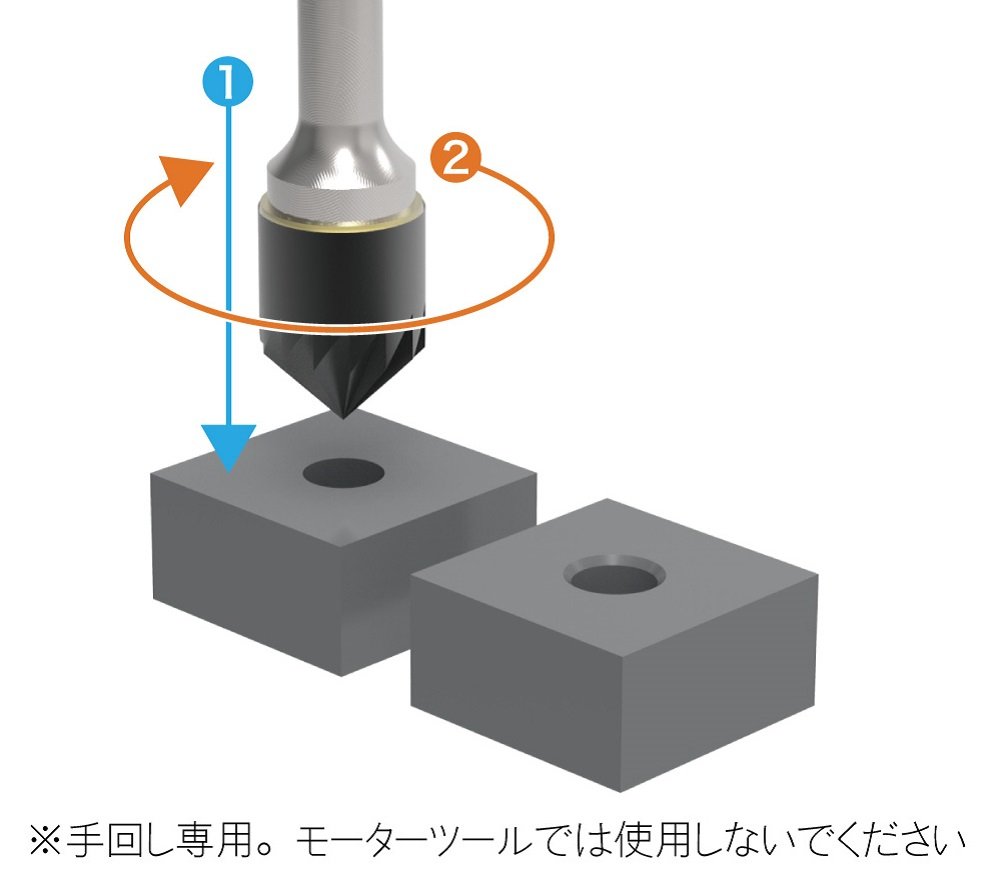 It has a tip angle of 90 degrees and can chamfer the periphery of the opening hole.