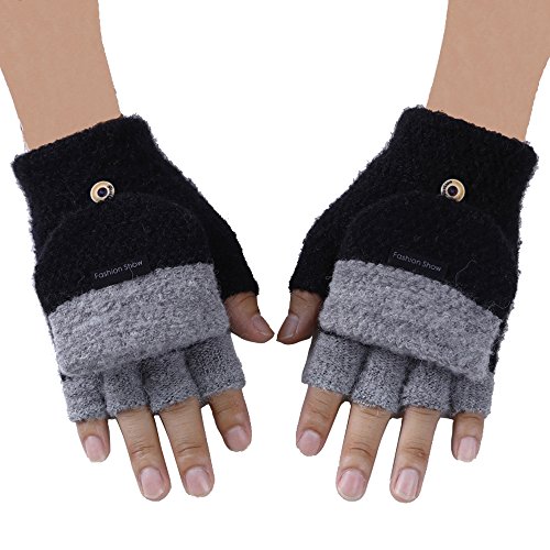 ? Winter mittens knit fingerless gloves, as warm as a lover's hand ?This knit fingerless gloves has a convertible mitten flap. Fold mitten flap back to expose fingers for zipping winter coats and tying shoes. Unsnap the mitten flap and fold it over fingers to warm them up in no time ?Keeps your hands warm and you can still have access to use your touch screen devices! ?Mittens flat size(become mittens): total length about 8.2inches/21cm; palm width about 4.1inches/10.5cm 0 |
