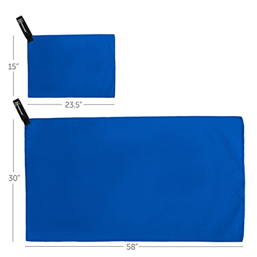 ★ PERFECTLY SIZED VALUE PACK - The extra large beach towels set is a uniquely mastered set to bring you the most value It features a set of 2 microfiber travel towel quick dry. 1 towel is sized at 58-30”inches allowing you to comfortably wrap yourself in the towel after the shower or after a swim. The second towel is a small towel sized at 23-14” inches, great to be used as a facehand towel, or to put underneath your feet. Together they make the most useful set of towels ever.