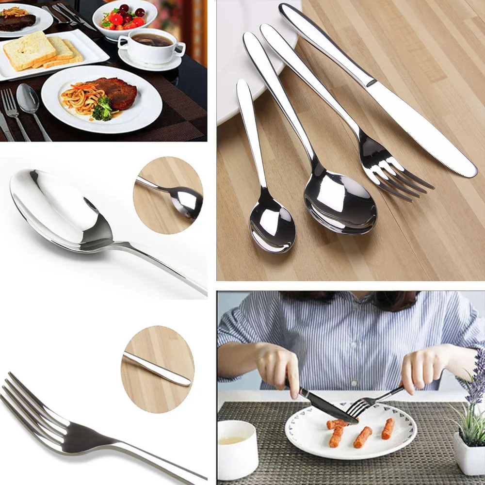 4Pcs/Set Stainless Steel Upscale Dinnerware Silver Cutlery Fork Spoon Teaspoon