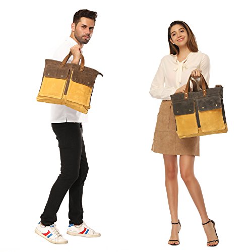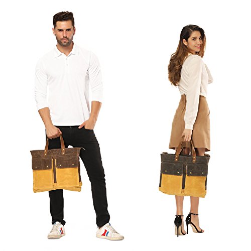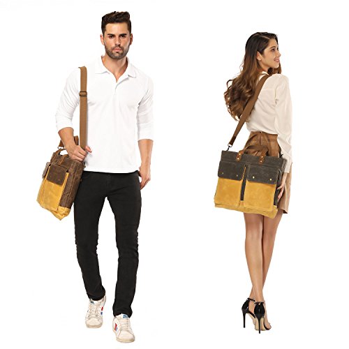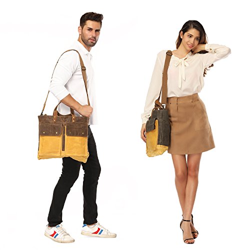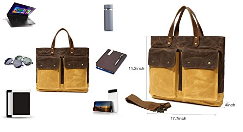 -. Feature : ✅ Material- This unique design Shoulder Messenger Bag was made by 90% waxed canvas, 10% crazy horse leather with bronze metal button and zipper with 32''-58'' adjustable shoulder strap, its durable material provides comprehesive protection for your valuable belongings. / ✅Roomy- Size-17.7 x 14.2 x 4 inch, There is total 7 big pockets to take care all your valuable belongings, inside the main compartment can fit in a 17'' laptop and another compartment with nice feeling foam padding and elastic band could take care your ipad, kindle etc, and 2 others pocket inside, plus there is 2 big pockets in front with magnetic clips and 1 big pocket backside.it is enough for all your life's necessities. / ✅Features- Its unique colors combination looks much more attactive and fashionable.it could be used as shoulder messenger bag, hand carry bag, crossbody tote bag,The waxed cotton canvas is well coated and water resistant so that it doesn't chip off and leave little wax deposit, all the zippers and heavy duty bronze metal have 2 years quality warranty / ✅Occasion- Suitable for any daily and outdoor activities, work, school, camping, hiking, jounery, school, running, walking, mountaining, biking, fishing, snowboarding, skiing, training ,travel, hunting and any other sport activities. / ✅30 DAYS RETURN POLICY- We offer a fantastic 30 day return period as long as the item is in new condition. Buying online is tough, especially when you can't hold or touch a bag before you buy it. We want to make it as simple as possible for you so you'll never have to worry.