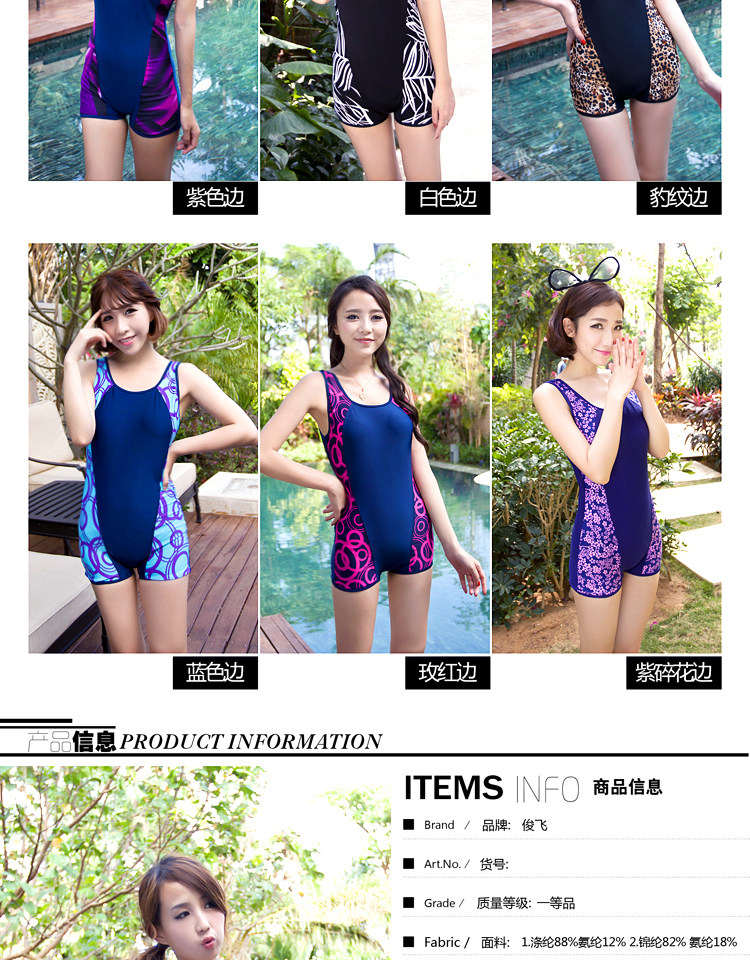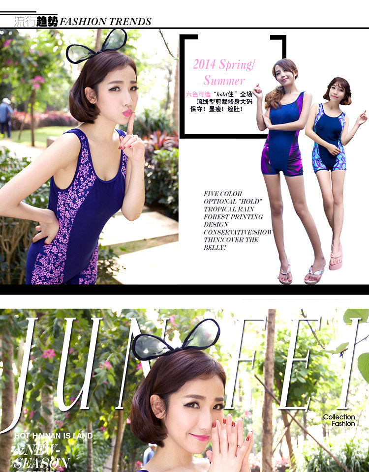 泳衣女平角遮肚性感 女式保守泳装大小胸温泉游泳衣 俊飞大码泳衣
