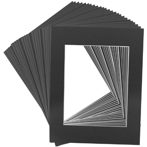 US Art Supply Art Mats Brand Premier Acid-Free Pre-Cut 16x20 Black Picture Mat Matte Face Frames. Includes a Pack of 25 White Core Bevel Cut Matte Frames for 11x14 Photos