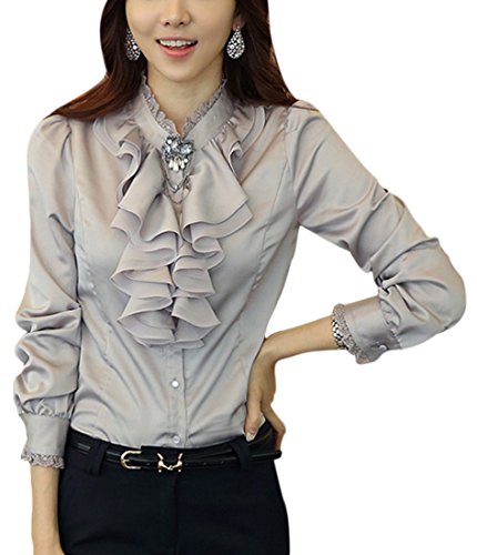 -. Feature : 毎日着ても飽きのこない着まわし力の高いシンプル無地のデザイン。春、夏はインナー(キャミソール、タンクトップ)の上に羽織って、袖を軽くロールアップしても。秋、冬にはやアウター(セーター チェスター トレンチ ダウン コート ジャケット)やファッション小物(ストール マフラー スヌード)などを合わせてコーデを楽しんでくださいね。 / スーツのインナーにおすすめの、上品な光沢のあるサテン生地を使用したスタンドカラー・フリル衿・長袖ブラウス(レディース・シャツ)です。ふんわりやわらかな生地感と襟ぐりのゴージャスなフリルがフェミニンな印象を与えるお洒落な1枚。スタンドカラーとフリル襟がデコルテを綺麗に見せてくれて、ちょっぴりセクシーで大人なレディース・トップスです。ふんわりとしたスリーブは二の腕を華奢見せしてくれて、ウエストラインを意識した女性らしい美ライン・シルエットが体型カバー効果もあり、デイリーユースはもちろん、デートやオフィス・通勤やビジネスシーン、オケージョンにも使えます。 / 肌ざわりの良い素材なので、着心地よく清潔感のあるブラウスは、シーズンやシーン、テイストを問わない着回し力抜群の定番デザインのファッション・アイテムです。女性らしいエレガントな雰囲気を醸し出し、ジャケットなどを羽織ればきちんとコーディネートの中に華やかさをプラス。フォーマルやちょっとしたオケージョン(パーティ、結婚式、二次会、お呼ばれ、入学式、入園式、卒業式、卒園式、発表会、演奏会、七五三、ママ会、女子会、イベント、季節行事等)にも◎。 / 襟ぐりに身頃と同色のフリルを豪華にあしらい、ジャケットのVゾーンからアクセントになるよう計算されたデザイン。また、タックをあしらいふんわりとしたシルエットに。身体から適度に離れるので気になるボディラインのカバーにもおすすめです。テーラードジャケットのVあきはもちろん、ノーカラージャケットなど様々なジャケットの襟まわりと相性良くコーディネートいただけます。ボトムスはパンツでもスカートでも相性が良く、汎用性の高さが最大の魅力です。ミニスカート、デニム、ショートパンツと合わせたガーリーなスタイルから、ワイドパンツ(ガウチョパンツやスカーチョ)との楽ちんコーデにも、キチンと感のあるタイトなボトムス・スキニーパンツと、ブーツやヒール、パンプスなどのシューズを合わせれば、ぴりっと辛口にまとまった、大人のカジュアルコーディネートが完成します。 / OLさんの通勤服として、ママさんのオケージョン・ファッションとして、セレモニー用からカジュアルユースまで幅広くお使いいただけるブラウスです。お友達へのプレゼントにも♪ 定番人気の上品ブラウスは、年齢問わず(20代、30代、40代、50代)、季節問わず(春、夏、秋、冬)オールシーズン活躍すること間違いなしの便利アイテムです。 【カラー】ホワイト、ブラック、ピンク、シルバー(グレー)【サイズ 】M、L、XL 【素材】ポリエステル、裏地:なし、付属品:なし   ※サイズ(寸法)をお確かめの上、ご購入ください。