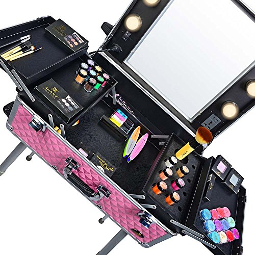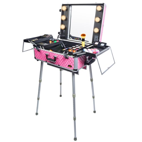 Studio : SHANY Publisher : SHANY Binding : Health and Beauty Product Description This top of the line professional makeup case has many features that make it stand out from the rest. Lightweight and easy to carry around is just the beginning. The case is made of aluminum and interchangeable trays for easy storage and organizing the beauty tools. The pull up handy rectangular organizer can be placed on the handle to hold the large electric tools like blow dryers, flat irons and etc. The bottom wheels are not the ordinary wheels you see on all other cases. The wheels are semi elastic, so when you pull the case, it won’t resist to the ground and it feels you are rolling on the glass. Six 40 watt lights are included in the case and can be upgraded to up to 50 or 60 watt if necessary. The lighting kit comes with a soft white/yellow light, is this is designed for professional applications indoor, and you may change them to day light or sun light lamps if needed. All six lights are dimmable and can be adjusted with a key placed on the case. The main plugs connects to the wall outlet via a long heavy duty cable. Inside the case is covered with dustproof thin layer of film which prevents the dusty powders to get in to the fabric. The expandable tray has a magnificent clear top lids which makes it easy to organize and find your favorites .When the case is open it can stand as high as 5 foot tall and it can go down to 2 foot if doing the application on the table. The most innovative part of the design is the four solid legs which unlike other brands are made of solid isolated aluminum. It prevent the legs from loosening over time. The legs are so light that they just add 2 pound to the case, this is the first design and manufacturing of such a case which can stand the rough job in the makeup artist industry. The case also comes with an extra outlet on the mirror, so you can easily plug in your electric tools without the need of the extension cords. If you are an international customers, you can but a convertor plug and use our case in your country as well. 0
