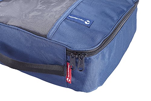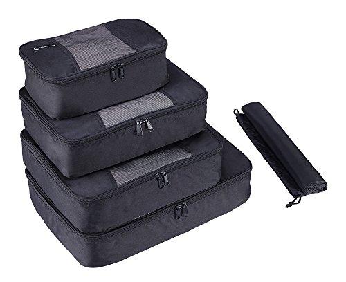 STAY ORGANIZED FOR EASIER TRAVEL with this Premium Set of 4 Packing Cubes with BONUS Laundry Bag. Makes packing so much faster. There is a place for all your clothing and accessories. Keep your clothes pressed flat so troubling wrinkles don't develop during long flights, car trips, and more. Professionally designed to maximize suitcase/backpack space while providing ultimate protection for your favorite garments. INCLUDES 4 DIFFERENT PACKING CUBES AND 1 BONUS LAUNDRY BAG to separate your dirty clothes from fresh ones: 17.5" x 12.75" x 4", 13.75" x 12 .75"x 4", 13.75" x 9.75"x 4", 11" x 6.75"x 4", and 13.9" x 20" (Laundry bag). EXCEPTIONALLY WELL MADE DURABLE QUALITY in these packing cubes. You get travel organizers made with extra light and stain resistant Poly Micro-Weave Fabric that looks good use after use for years. The front mesh provides excellent circulation so your clothing doesn't get musty smells. We have reinforced the handles so they stay strong even when these packing cubes are fully loaded and weighted down. You will appreciate the very high quality SBS zippers that work smoothly with every use. MADE BY NEWNOMAD the exciting brand committed to the traveling nomad in all of us. Frequent travelers have quickly come to look at NewNomad as their go-to supplier for travel equipment that is smartly designed, looks attractive, and holds up to even the harshest uses. 100% MONEY BACK GUARANTEE ensures this is your best bet for a pleasing no-risk purchase. Many of our customers are purchasing two sets so they always have plenty of packing cubes on hand. HURRY AND BUY NOW while we still have lots of sets in stock. These make a much appreciated gift for friends, family, and co-workers. 0