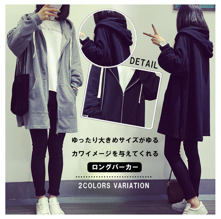 | ゆったり大きめサイズがゆるカワイメージを与えてくれるロングパーカーロング丈ですので、 ヒップラインが気になる方にもオススメです。スウェット素材なので、秋から春まで3シーズン使っていただける万能さにメロメロさっと羽織れて、着痩せ効果、体型カバーも期待できそう♪ | |