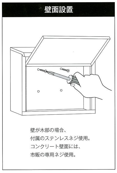 | 仕様 | 表札:プレート 鍵:ダイヤル錠付 取付可能場所 ポールスタンド/背面・底面 外掛壁掛 門扉・フェンス/側面・上部 |