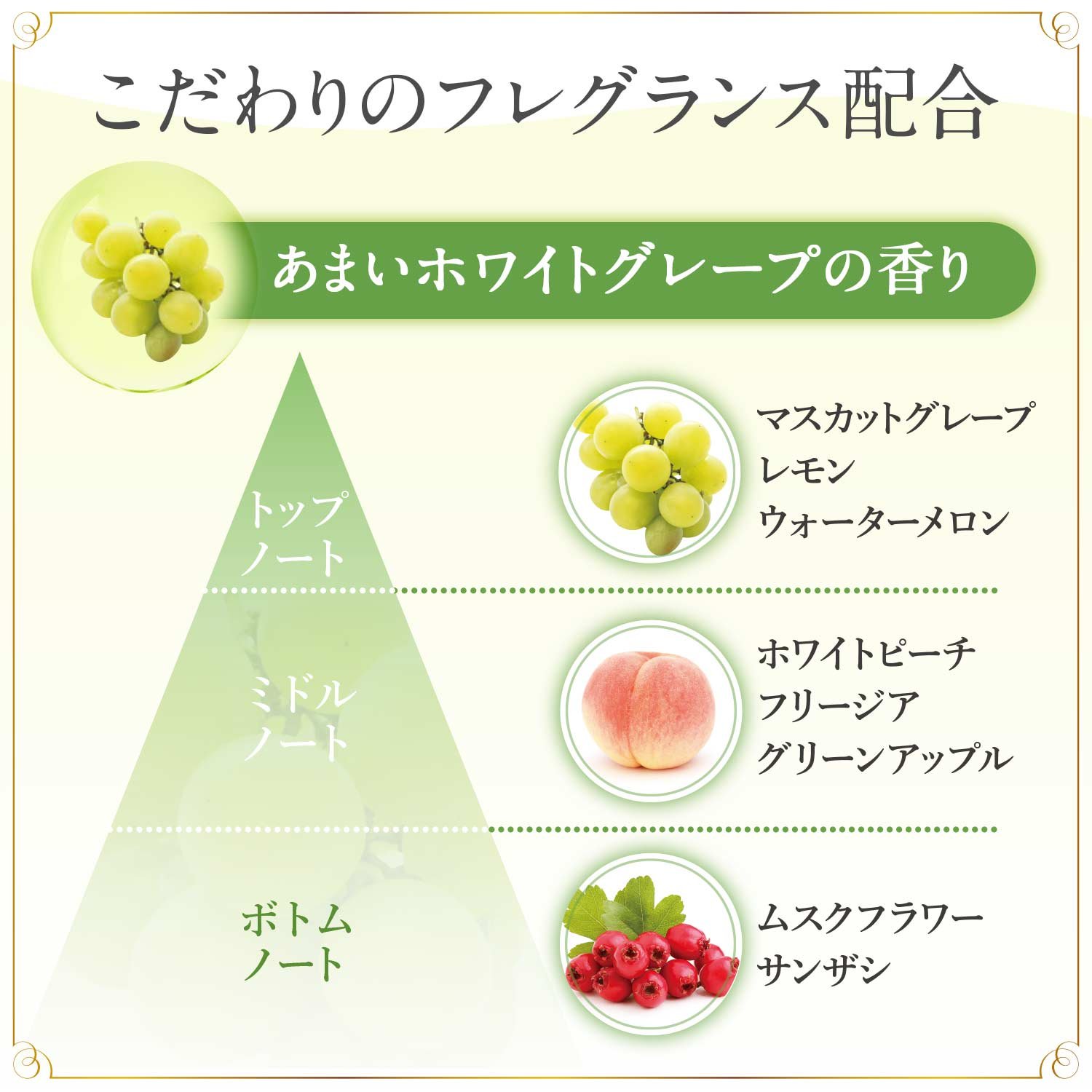 ● The sweet white grape scent gives you a luxurious feeling while enriching.