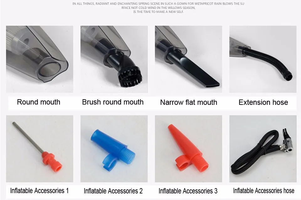 7, when the product was wet and water, should pay attention to the front cover of the water barrier height (capacity), inhalation height must not exceed the amount of water resistance, (must be turned off before opening the cover pour water or wet liquid then put it back before re-use ). Accessories: beak tip.