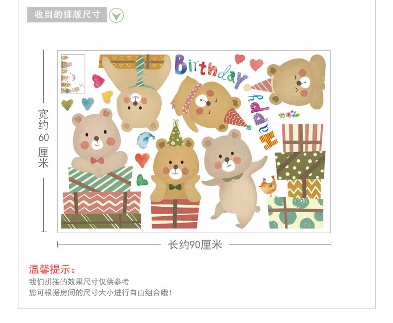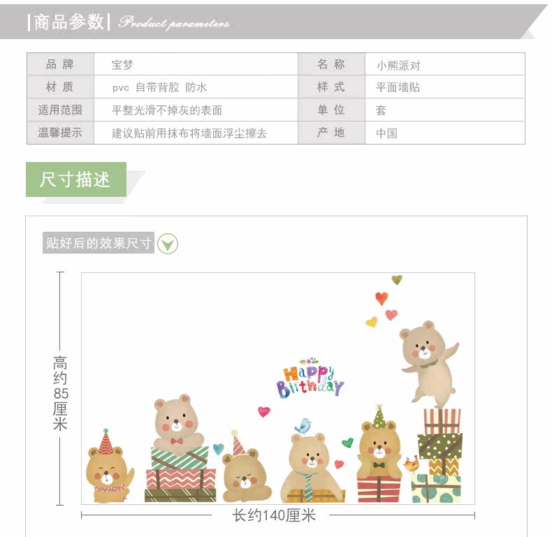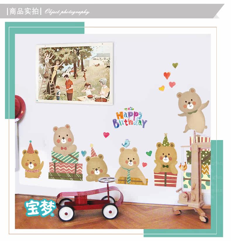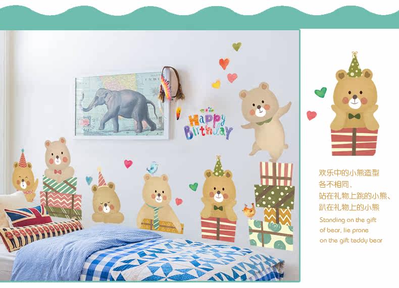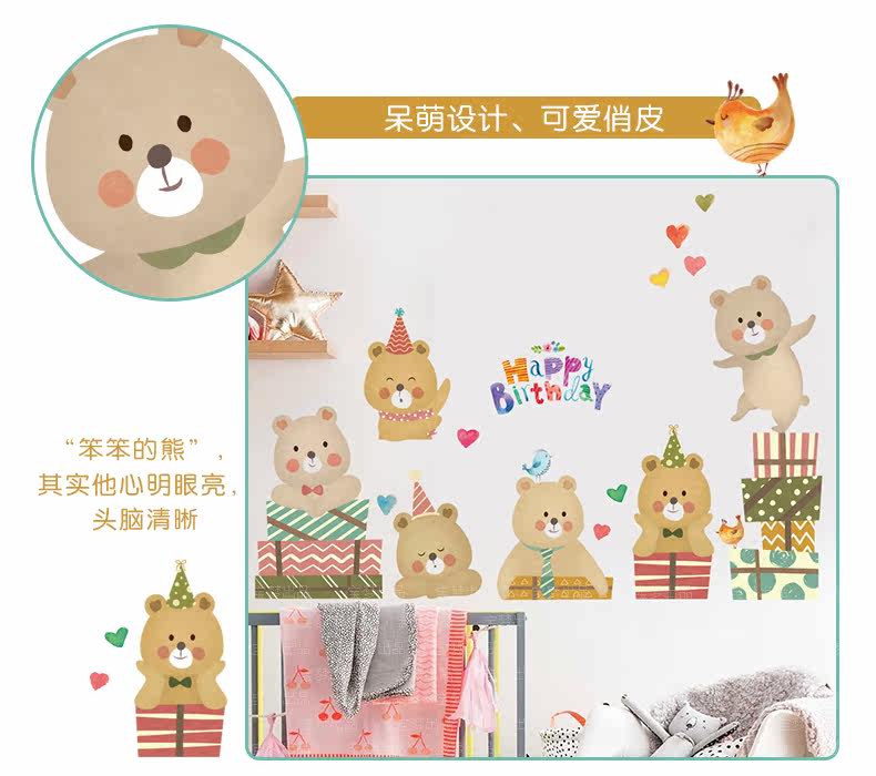 卡通儿童房宝宝卧室床头装饰品墙贴纸可爱幼儿园温馨小熊生日贴画