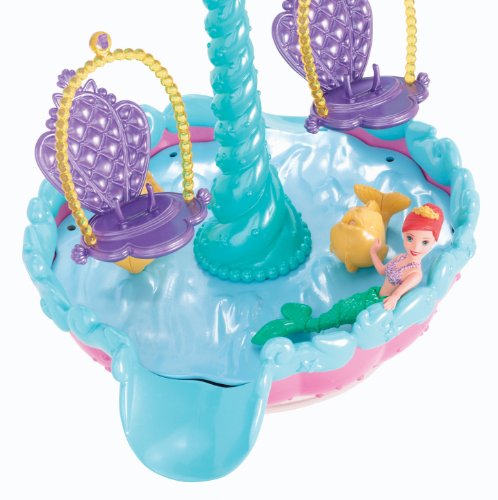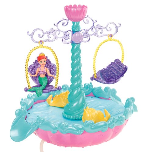 -. Binding : Toy -. Brand : Mattel -. EAN : 0885162280183 -. Feature : Enchanting play set floats on water for tub-time fun / Comes with one Ariel small doll / Squeeze the pump to spray water from the fountain and fish's mouths / Twist the top to make the swings spin / Set features a pretty pool area and slides -. IsAdultProduct : 0 -. Label : Mattel -. Manufacturer : Mattel -. Model : X9397 -. MPN : X9397 -. PackageQuantity : 1 -. PartNumber : X9397 -. ProductGroup : Toy -. ProductTypeName : TOYS_AND_GAMES -. Publisher : Mattel -. Studio : Mattel -. Title : Disney Princess Ariel's Floating Fountain Playset -. UPC : 754295789699 -. Warranty : 1 year warranty against manufacturer defects