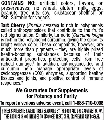 MOST EFFECTIVE ANTI-INFLAMMATORY COMPLEX - Tart Cherry Extract with Turmeric is proven to be the most effective anti-inflammatory complex available. 875 mg pills help with gout, joint pain, inflammation, and contain powerful antioxidants for tissue and cellular health.