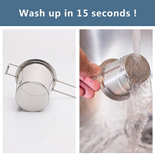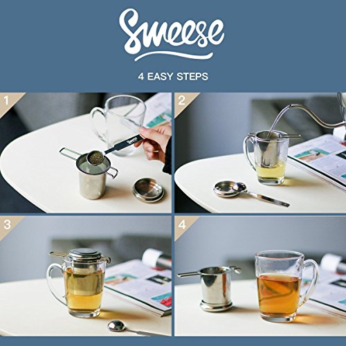 EASY TO CLEAN The infuser is easy to clean. Tea leaves don't really get stuck in there when you're trying to rinse it out. And DISHWASHER SAFE. Great for Tea and More It works perfectly with a wide range of teas, such as Rooibos and Oolong. It's also for spices or ground coffee. BONUS MEASURING SPOON The spoon is heavy stainless steel, perfect for measuring loose tea. HOW TO USE 1.Place the tea strainer on the brim of the cup or kettle. 2.Use the sweese spoon to scoop up which tea you like. 3.Pour hot water and close the lid. 4.Finally, enjoy your tea-time. 0 |