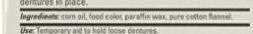 -. Feature : Temporary aid to hold loose dentures / With a vacuum grip for better fit & hold / No unpleasant odor, taste or mess