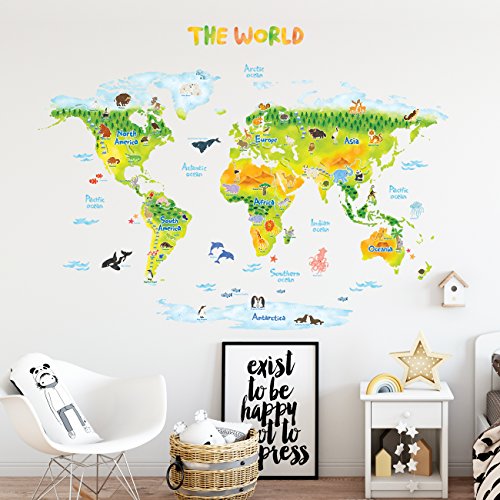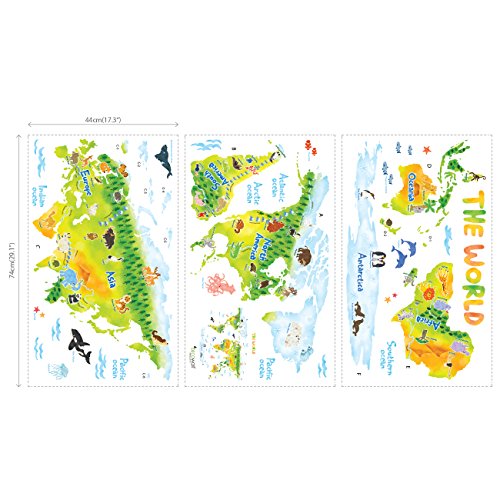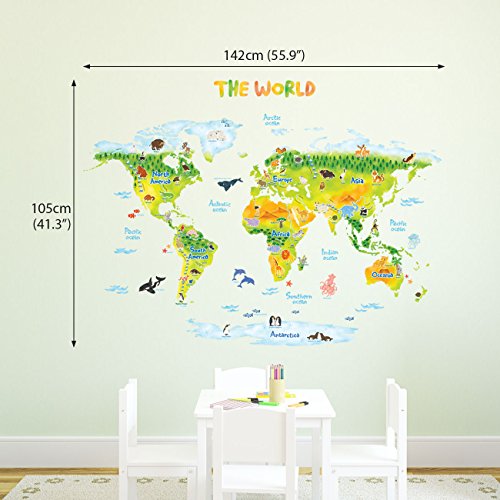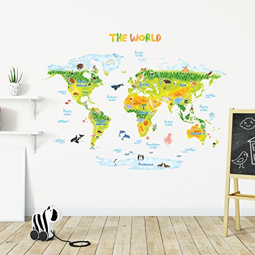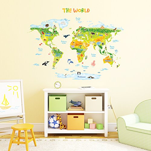 -. Title : Decowall DLT-1715 Geological World Map with Animals Kids Wall Stickers Wall Decals Peel and Stick Removable Wall Stickers for Kids Nursery Bedroom Living Room (Xlarge)