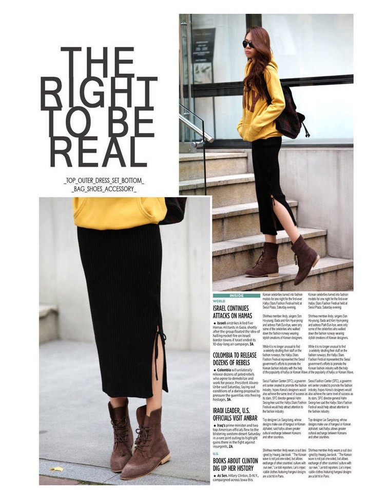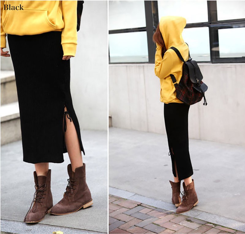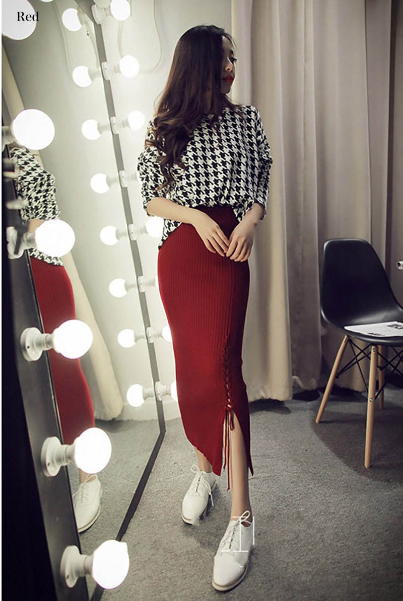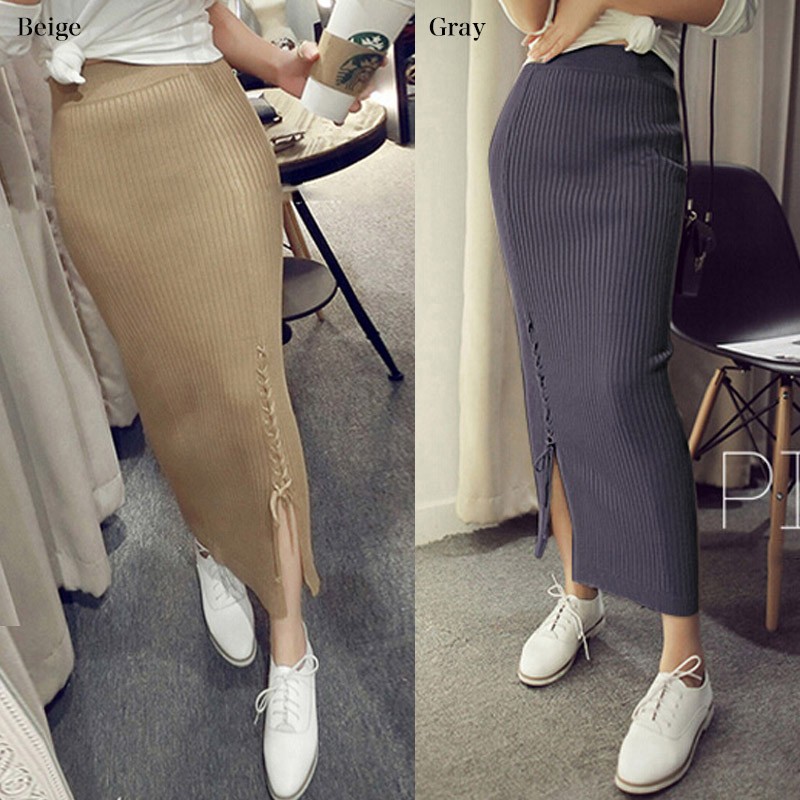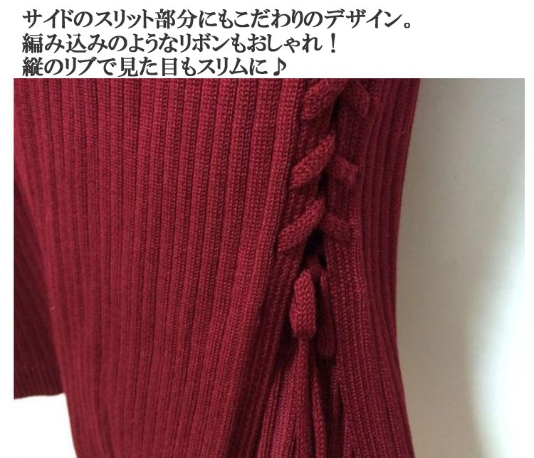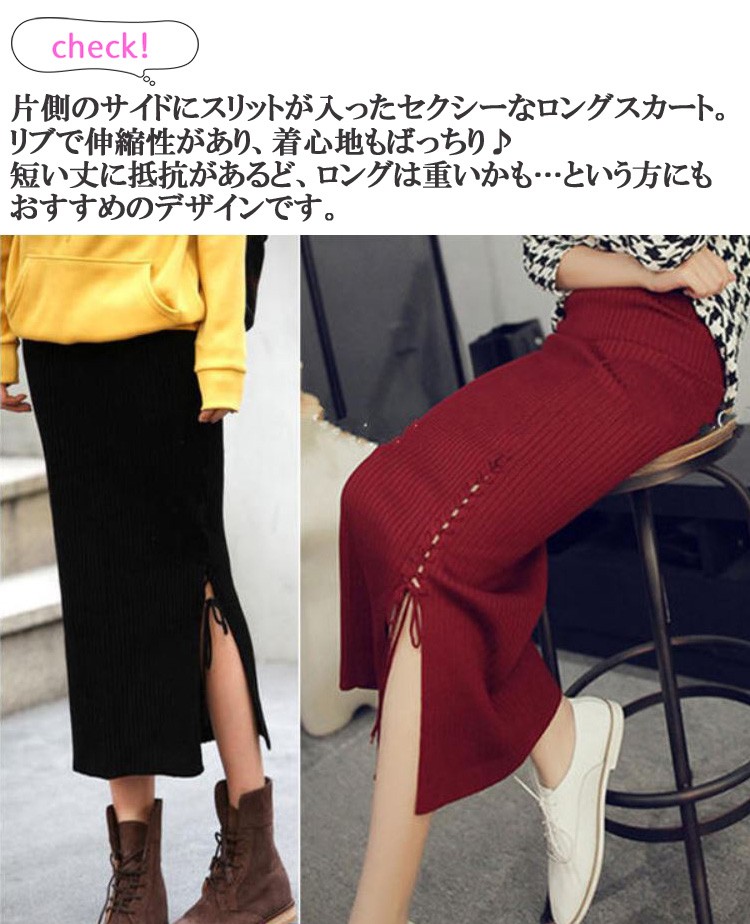 サイドにデザインされたレースアップスリットが歩くたびにチラリとのぞくレッグラインをセクシーに演出。伸縮性のあるニット素材なので、穿き心地が良く秋冬のデイリーコーデにぴったり。細かいリブ使いが縦のラインを強調し、美脚へと導きます。