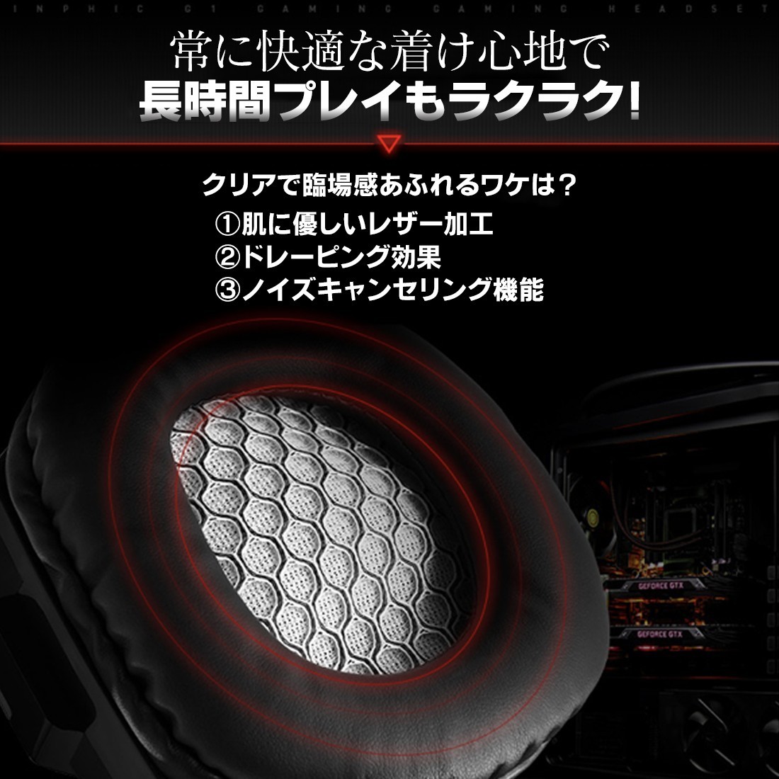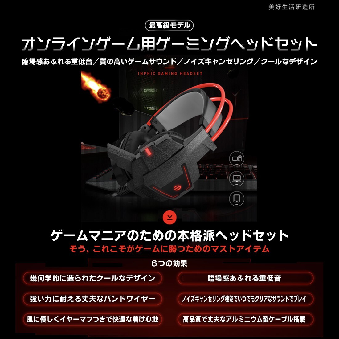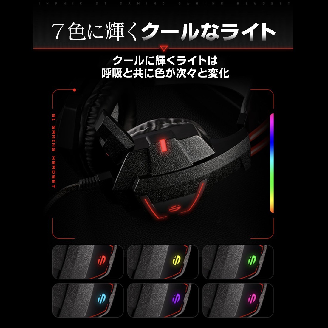 【機能】・レザー素材で作られたイヤーマフは長時間装着をしていても疲れない設計になっております。通気性に優れ、熱がこもりにくく遮音性も抜群なので快適なゲームライフを送る事が出来ます。・(USB接続時)ヘッドホンは色鮮やかに発光することが出来ます。・軽量で高性能で耐久性に優れたワイヤーを使用しているので長期間使用する事が出来ます・ノイズキャンセリング機能付き【多機種対応】3.5mmジャックでPC、iPad 、スマートフォン、またPS VITA、PS4、XBOX ONE S、ニンテンドー switch、DVD、Netflix、映画、音楽、Skype、チャット等を快適にプレイことができます。