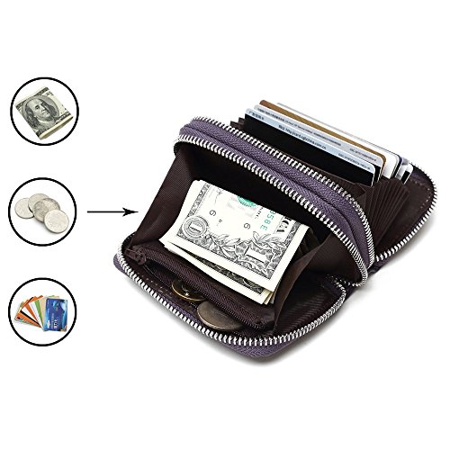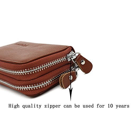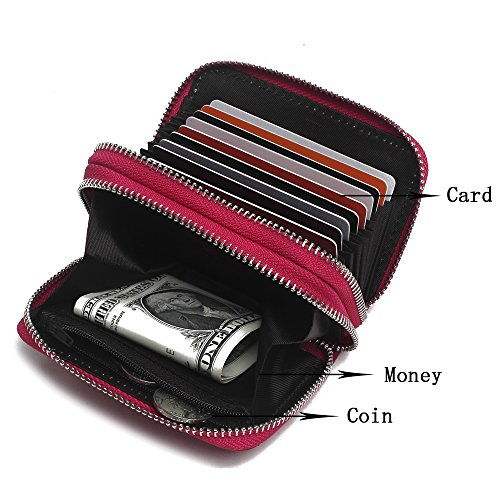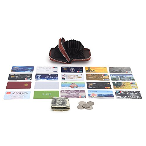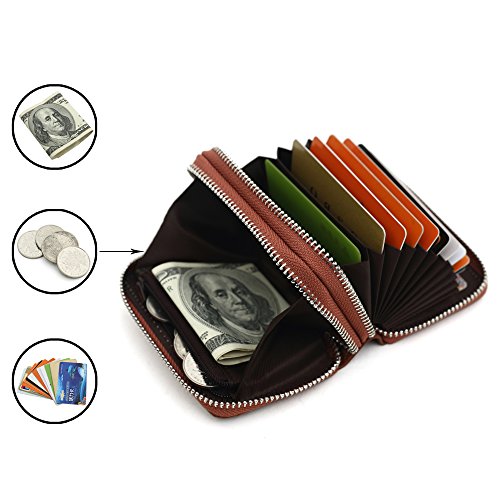 Credit card holder structure:11 credit card slots , a cash slots , a zipper coin pocket and a ID window. Each can fit 2 or more cards, Big currency pocket. Convenient feature for those who travel. 10 Year Warranty!