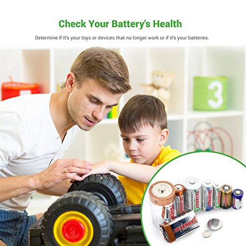 - Works with 12 Different Battery Sizes - A variety of popular household battery types: AAA, AA, C, D, 9V and CR123A, CR2, CRV3, 2CR5, CR-P2, and various button cell batteries.