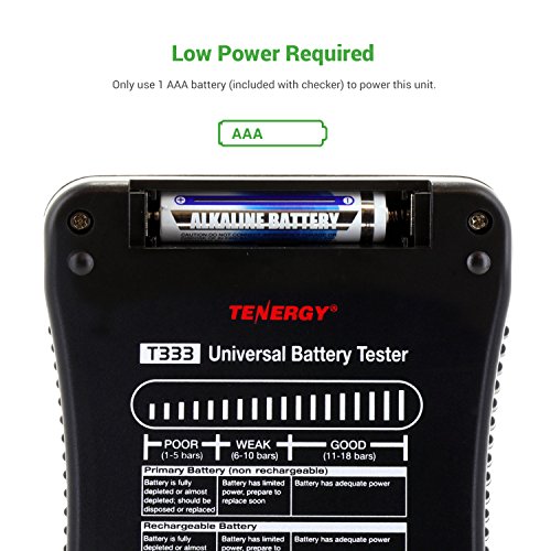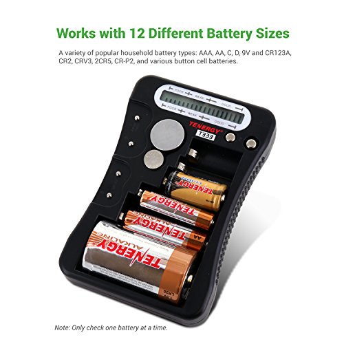 Tenergy T-333 Universal Battery Tester LCD Display Multi-Purpose Checker for Batteries (AA, AAA, C, D, 9V, CR123A, CR2, CRV3, 2CR5, CRP2, Button Cells)