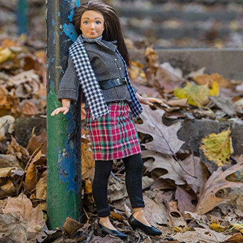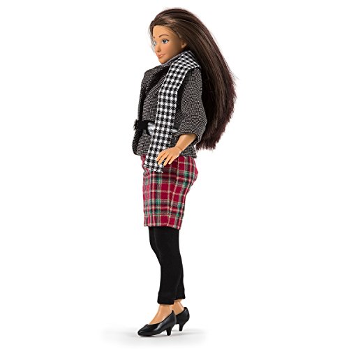 - Feature : Includes: grey heathered and ribbed trimmed turtleneck top, tweed jacket with black buttons and patent belt, tartan plaid pencil skirt, hounds tooth scarf, black leggings and black stiletto heels. / Lammily World of Fashion / Lammily Accessory