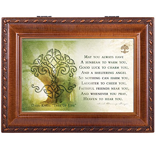 Irish Prayer Cottage Garden Wood Grain Finish Jewelry Music Box - Plays Song Irish Lullaby